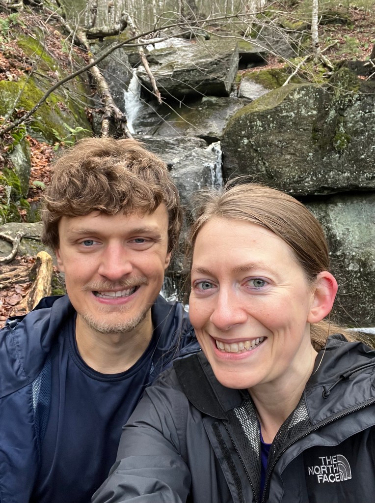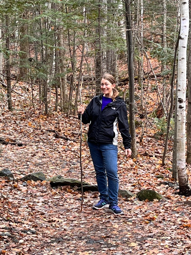 The next morning I woke up early, reinvigorated and determined not to let the two emails ruin my mood on vacation. We ventured off for a hike at Mount Hunger before the rain was supposed to hit. It was our first hike in a long, long time so we were a bit rusty. I had found the Waterbury Trail and it looked really good online, rated a moderate hike, and ended in a panoramic view, my favorite! What I didn’t factor in was that the trail was going to have slippery wet leaves, rocks, and tons and tons of puddles. At one point there was a sign that said “TRAIL” and it pointed to the top of a waterfall. Somehow I jumped on the rocks and made it across without falling in the stream. I didn’t think I had it in me, usually I’m so clumsy!