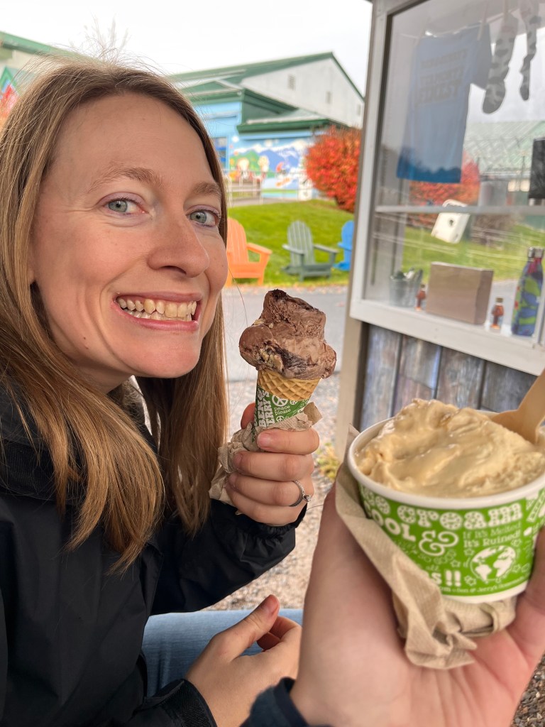 Then the trail markings became less and less visible and increasingly steep with wet rocks. I lost track of how many times I slipped. We ran into some others on the trail and inquired about the trail markings and they said that’s just how the trail is and it gets more dicey near the top. As soon as they left, Matt and I looked at each other and pointed down. At first I was disappointed that we missed the view, but honestly, I was just hoping we weren’t going to hurt ourselves on our way back to the car, which we didn’t. Success! And we just so happened to pass Ben and Jerry’s headquarters on our way back to the hotel. It was almost as if I planned it that way, wink wink. When I got back to our hotel I did a bit more digging on the trail and found out that even if we got to the top, there was a 4 foot solid rock wall at the end we would have had to scale to see the view, so that would have been even more interesting! I guess “Moderate” hike in Vermont is my version of “Difficult.” Maybe someday that could be in the cards for us, but you know what, I’m just proud we went as far as we did without any injuries! And any hike that ends in delicious ice cream is alright in my book.