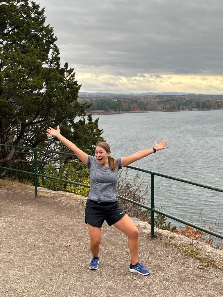 And as all travel adventurers know, you have to be flexible with your itinerary, or as much as you can. I had carefully planned this trip, but you can never predict mother nature. So we had to switch a few things up last minute due to lots and lots of rain being forecasted. But this morning we woke up early and went for an early morning run at Red Rocks Park in South Burlington before the rain, and I have to tell you, it was exactly what I’ve been missing. Being somewhere new, and especially in nature, is what I live for. It helps new ideas form for my books and just overall gives me a sense of peace. There is nothing like seeing the vivid colors of fall and a lake peeking through a grove of trees.