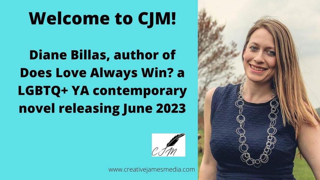 I’ve now sent my final manuscript to my publisher to start the editing process. I also had to send along the front and back matter, aka dedication, acknowledgements, about the author, and an LGBTQ+ resource page. Now while I wait for the edits, I’ll keep up with my social media platforms and try to engage the audience that will want to read my book. I even started a Facebook author page. You can find me on Twitter at @dianebillas, on Instagram at @dianebillaswrites, or at my brand new Facebook author page @dianebillas.
